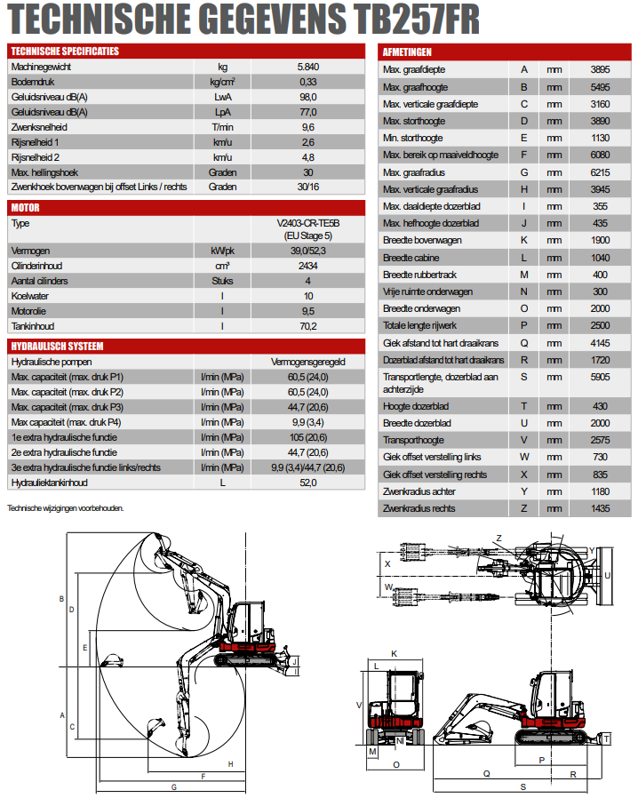 De Takeuchi 257 FR is een krachtige en veelzijdige graafmachine, speciaal ontworpen voor maximale efficiëntie in krappe en uitdagende werkomgevingen.